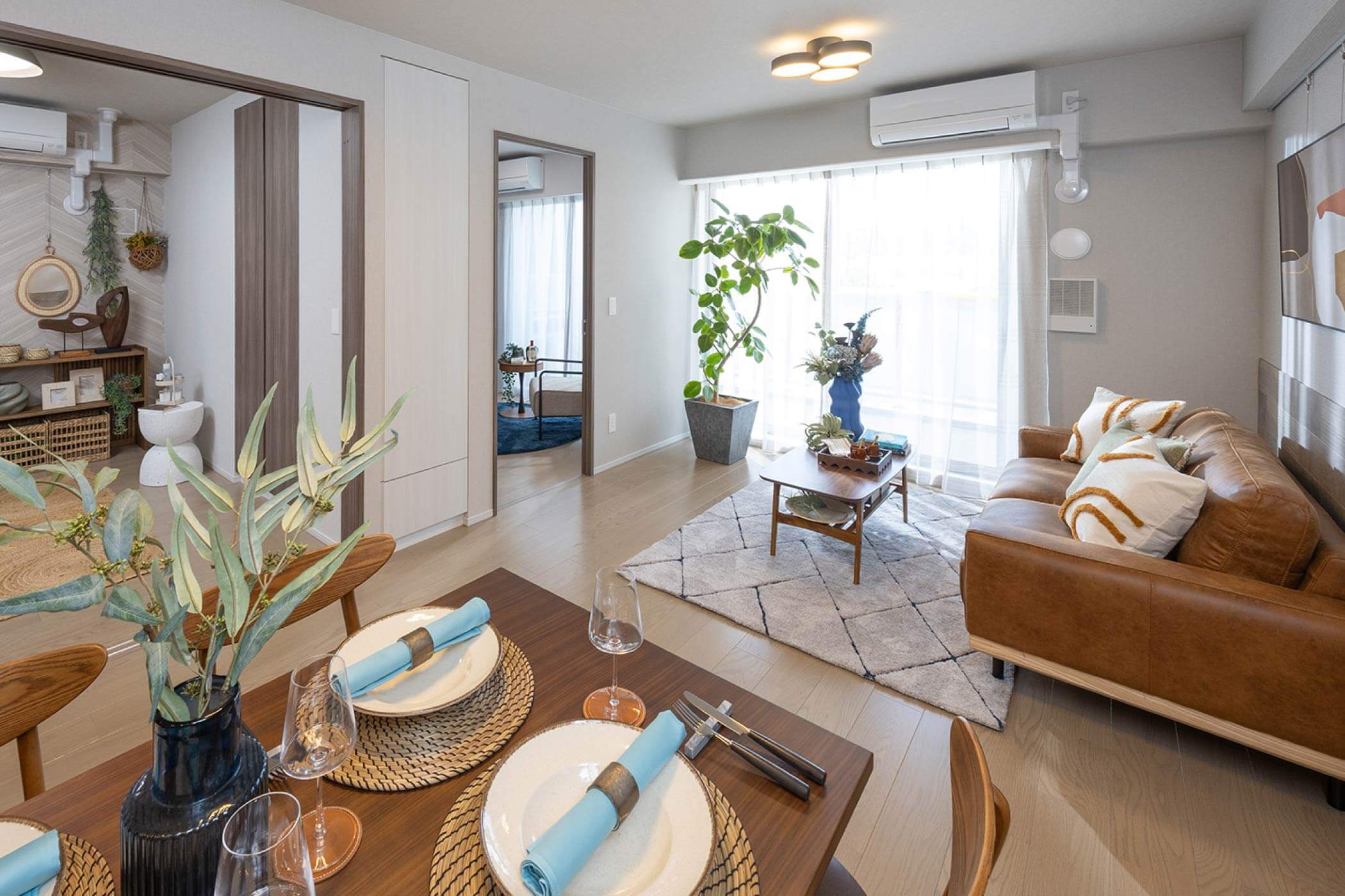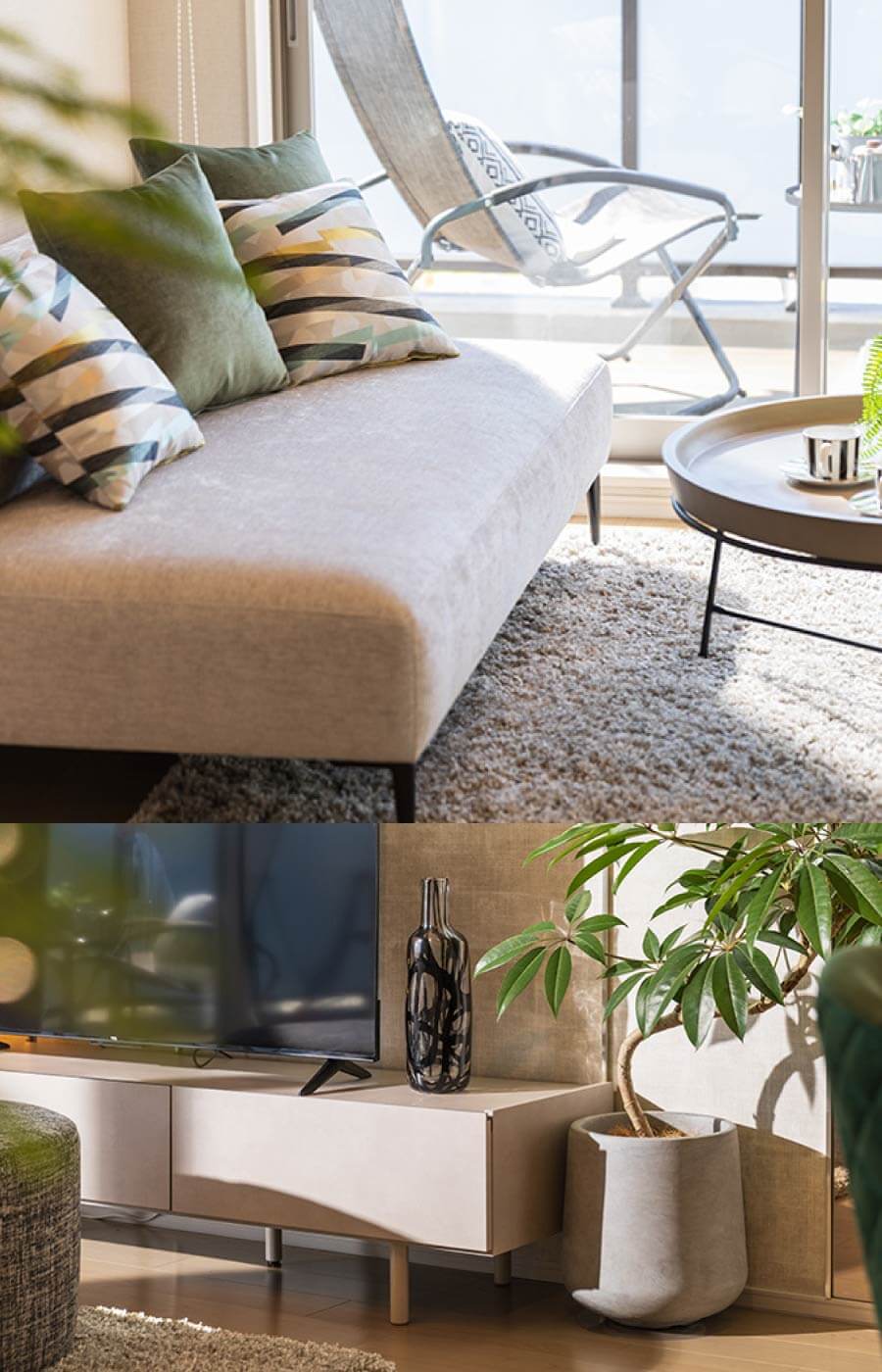 - ※掲載の室内写真はモデルルーム(Aタイプ・Cタイプ)を2025年4月・2025年5月に撮影したもので、一部グレードアップオプション(有償)・インテリアオプション(有償)を設置しています。家具・調度品・照明器具等は販売価格に含まれません。また、設備・仕様は各タイプにより異なります。予めご了承ください。