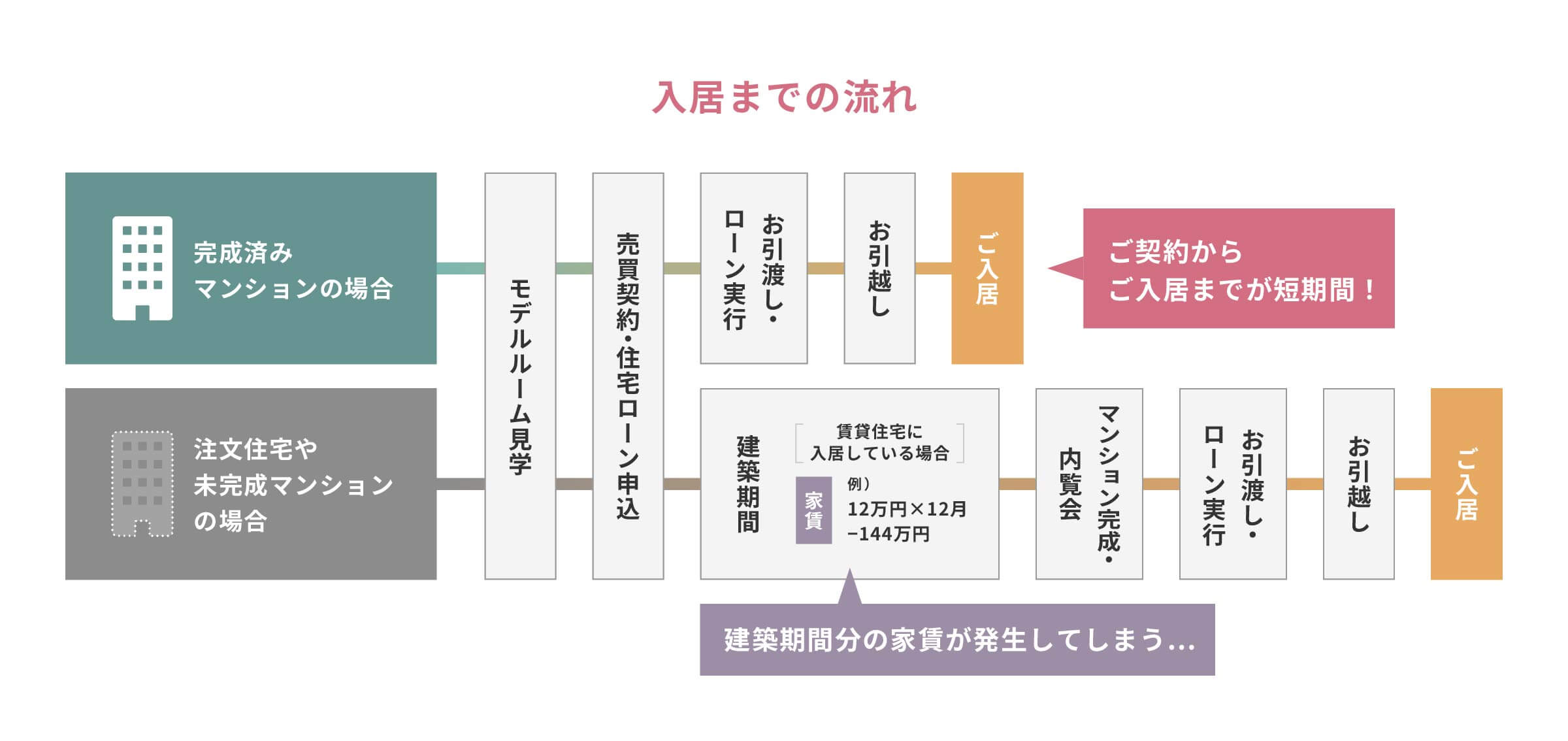契約後、数ヶ月~1年以上も入居を待たないといけない建設中の物件とは違い、