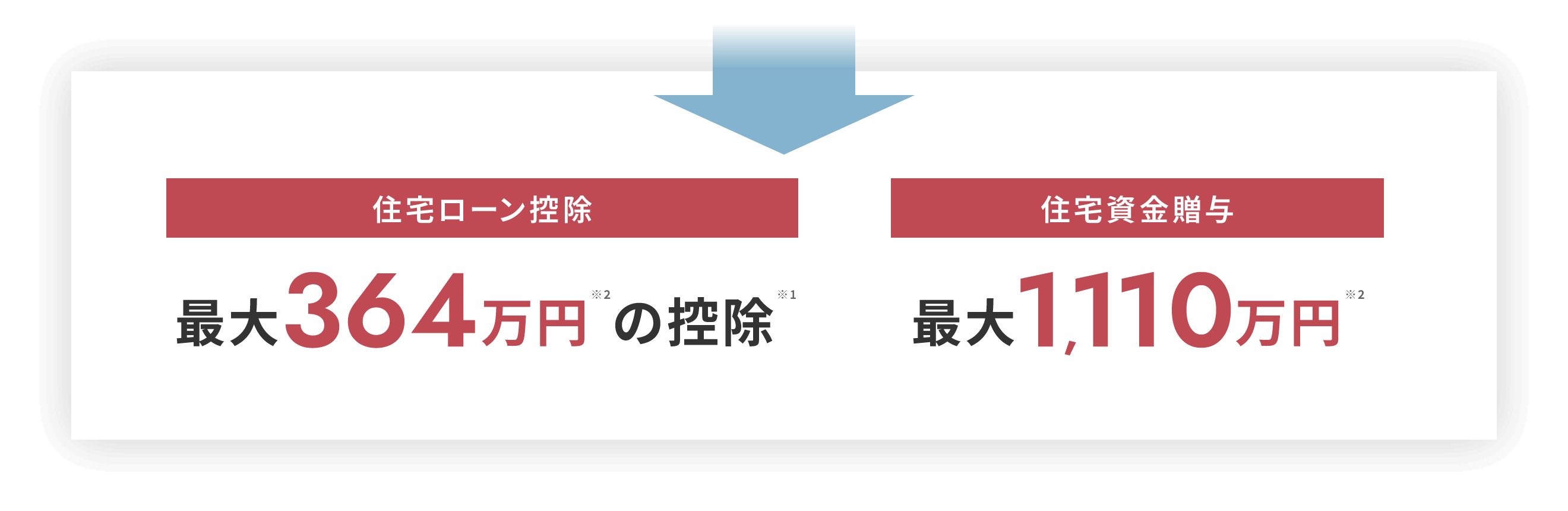 - ※1〈対象〉2025年12月31日までに住宅ローンを借り入れて住宅を取得した場合、13年間、所得税から控除を受けられます(所得税額を超えた分は翌年の住民税から控除)。詳しくは係員にお尋ねください。